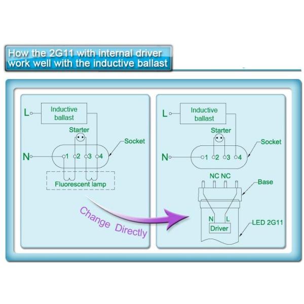 Engineering replaces typeA+B compatible electronic ballast 535MM 16W18W20W 2G11 PL light with 2835smd CRI80 ac100-277V Images |